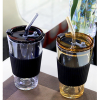 Cốc Cà Phê Thủy Tinh Cách Nhiệt Trong Suốt Bán Chạy Sáng Tạo Tùy Chỉnh Cốc Thủy Tinh Uống Nước Có Nắp Ống Hút